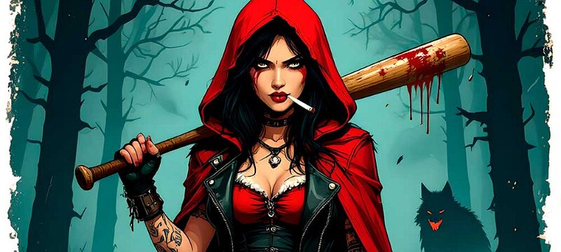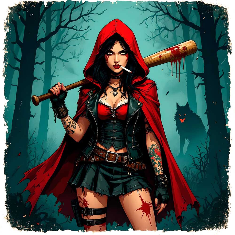 Märchen werden düster, rebellisch und voller Rock’n’Roll-Spirit. Rotkäppchen, Schneewittchen & Co. als Noir-Outlaws: Leder statt Ballkleid, Rebellion statt Zauberstab. Vintage, Grunge und schwarzer Humor für alle, die die dunkle Seite der Kindheit lieben.