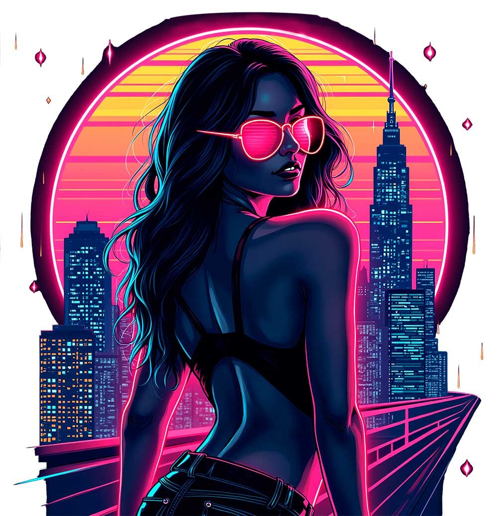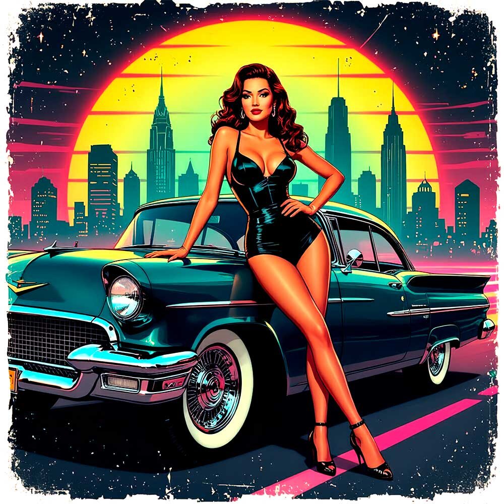 80s-Retro-Futurism trifft modernen Streetstyle: Neonfarben, Chromdetails und kühne Formen. Inspiriert von Muscle Cars, Trucks, Pin-ups und Rock’n’Roll – für alle, die auffallen und Nostalgie mit futuristischem Flair lieben.