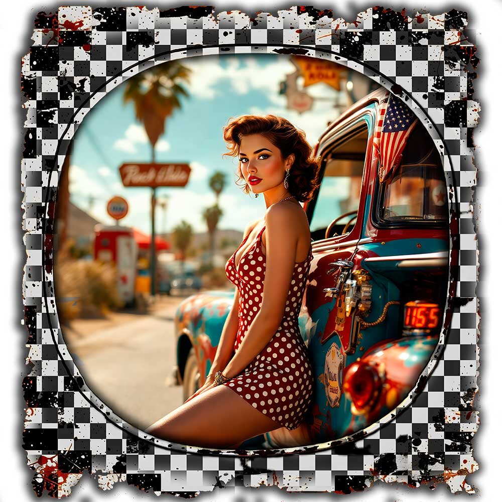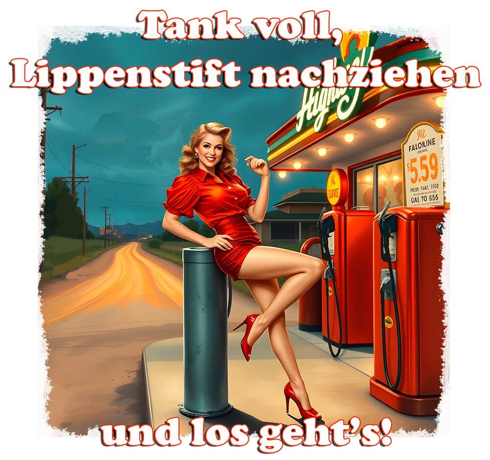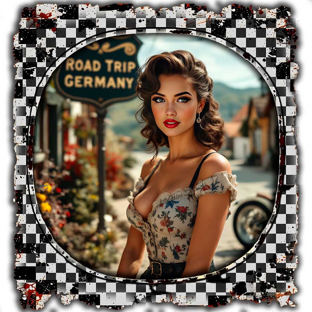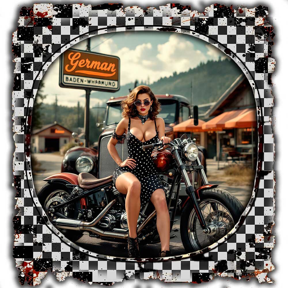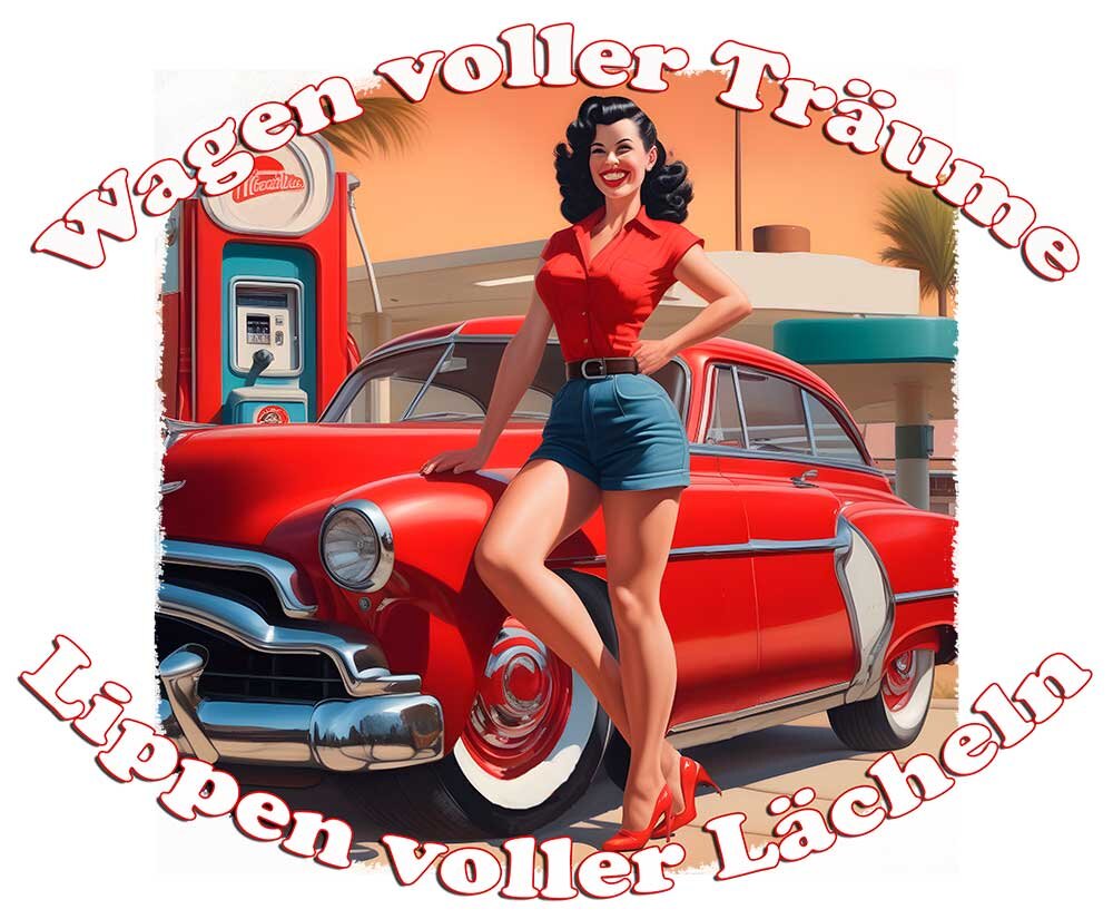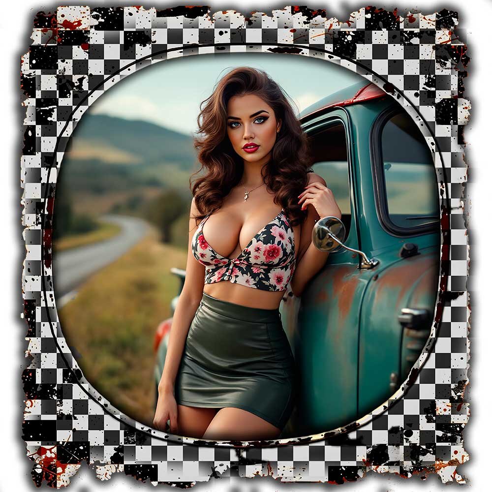 Zeitlose Eleganz klassischer Pin-up-Girls trifft raues Truck- und Rock’n’Roll-Flair. Perfekt für Retro-Lifestyle-Liebhaber, die Stil, Persönlichkeit und Vintage-Vibes lieben – auf Shirts, Hoodies oder Accessoires.