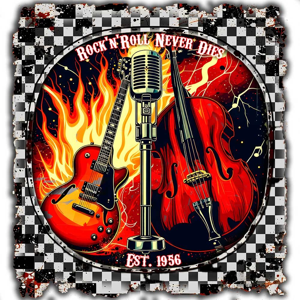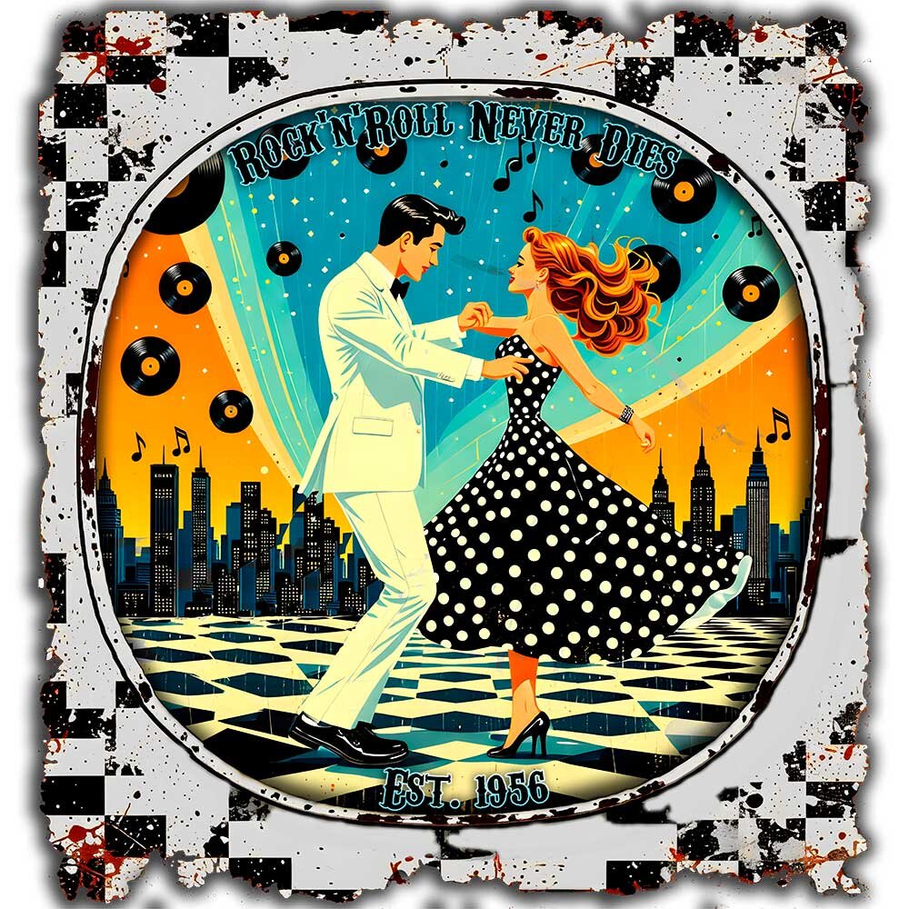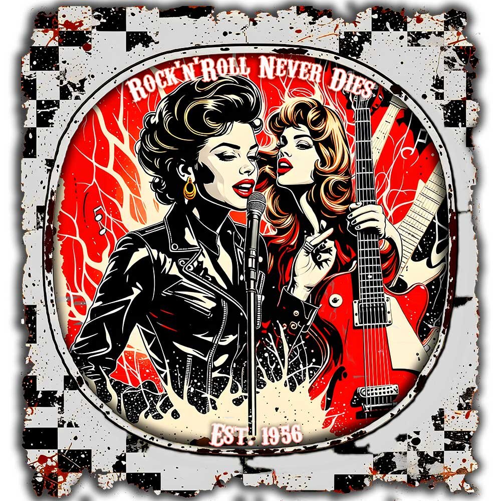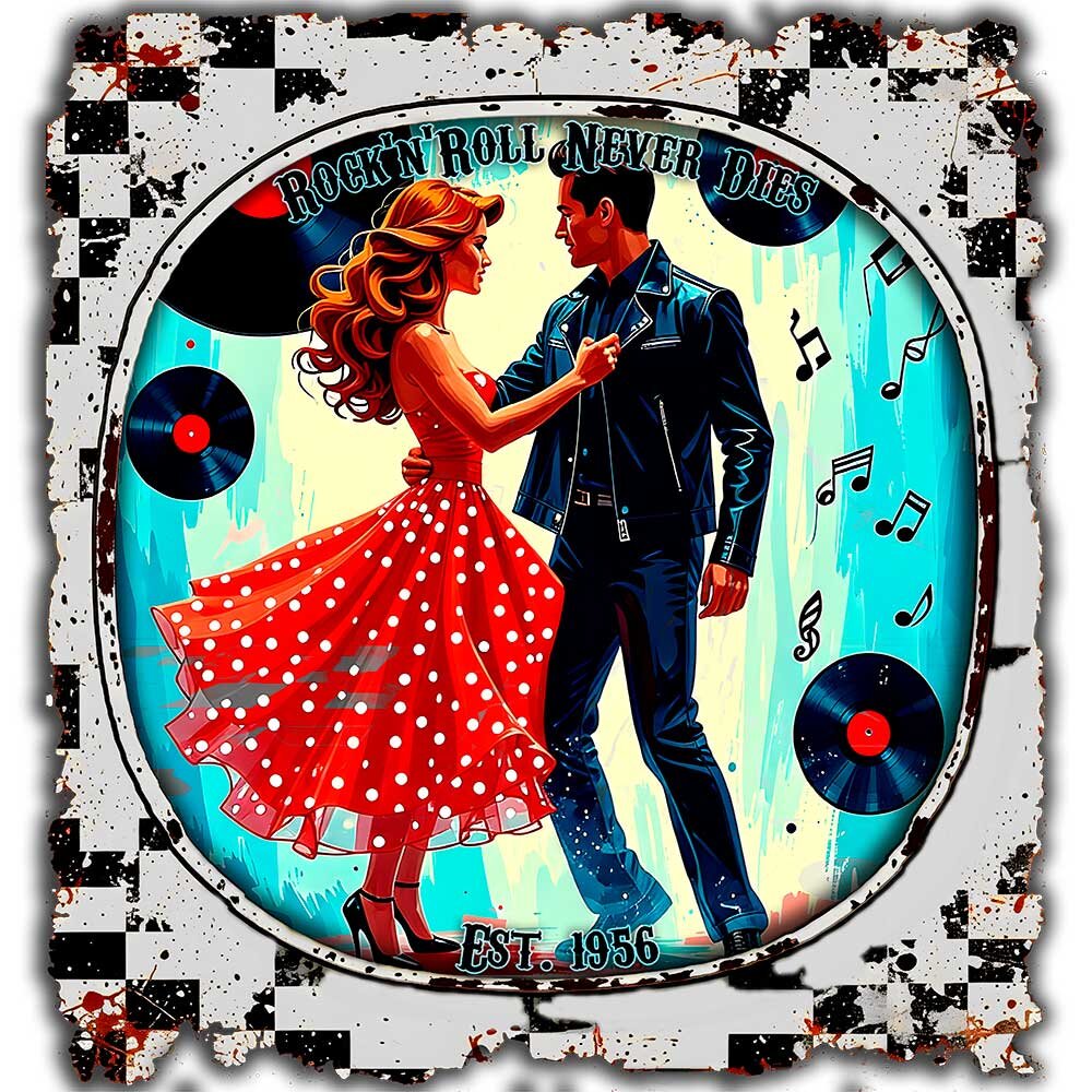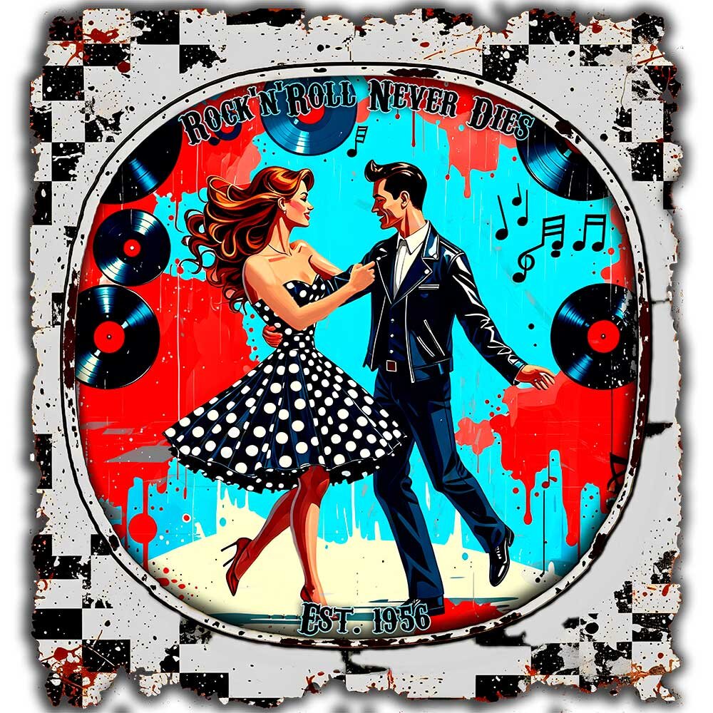 Retro-Style der 50er & 60er, weicher Stoff und langlebiger Druck. Perfekt für Musikliebhaber, Retro-Fans und alle, die ihren Look mit Nostalgie aufpeppen wollen. Vielseitig kombinierbar und ein tolles Geschenk.