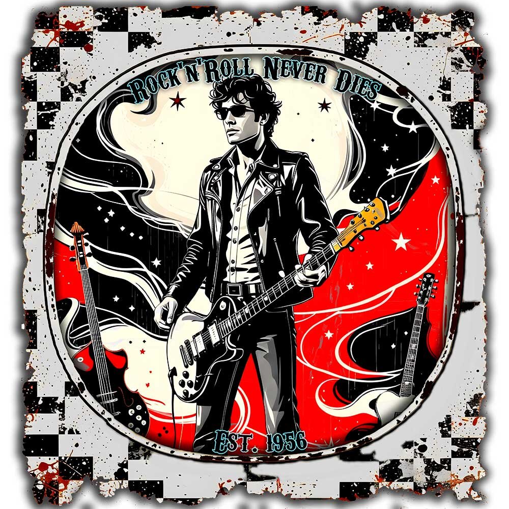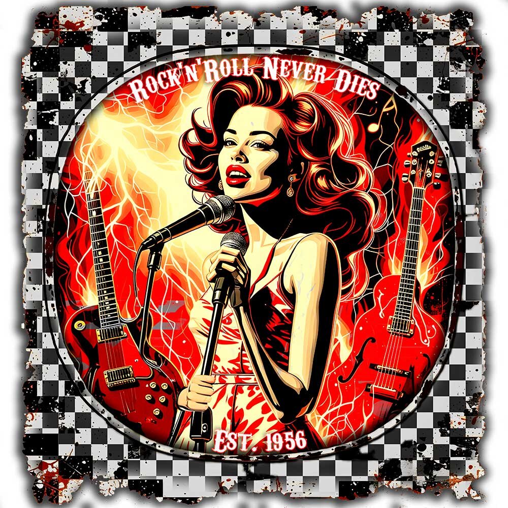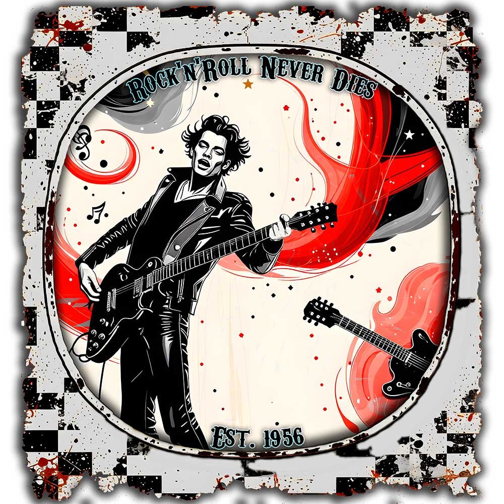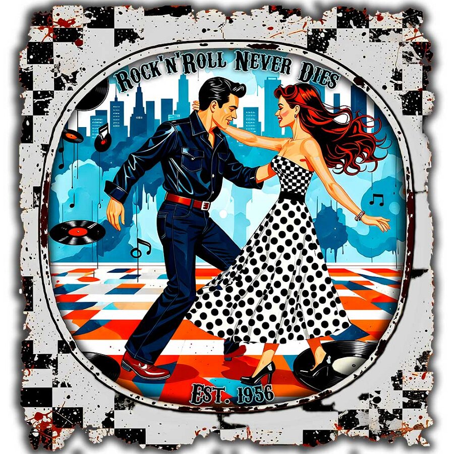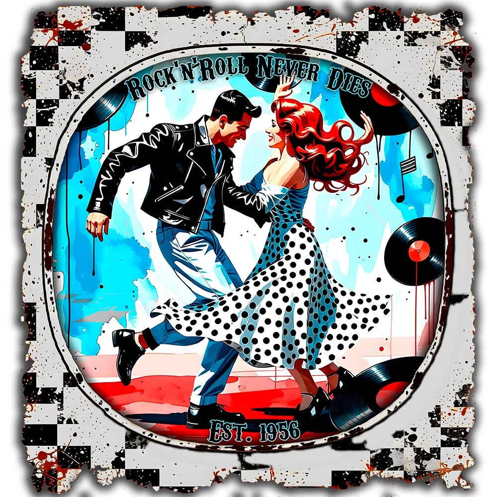 Retro-Style der 50er & 60er, weicher Stoff und langlebiger Druck. Perfekt für Musikliebhaber, Retro-Fans und alle, die ihren Look mit Nostalgie aufpeppen wollen. Vielseitig kombinierbar und ein tolles Geschenk.
